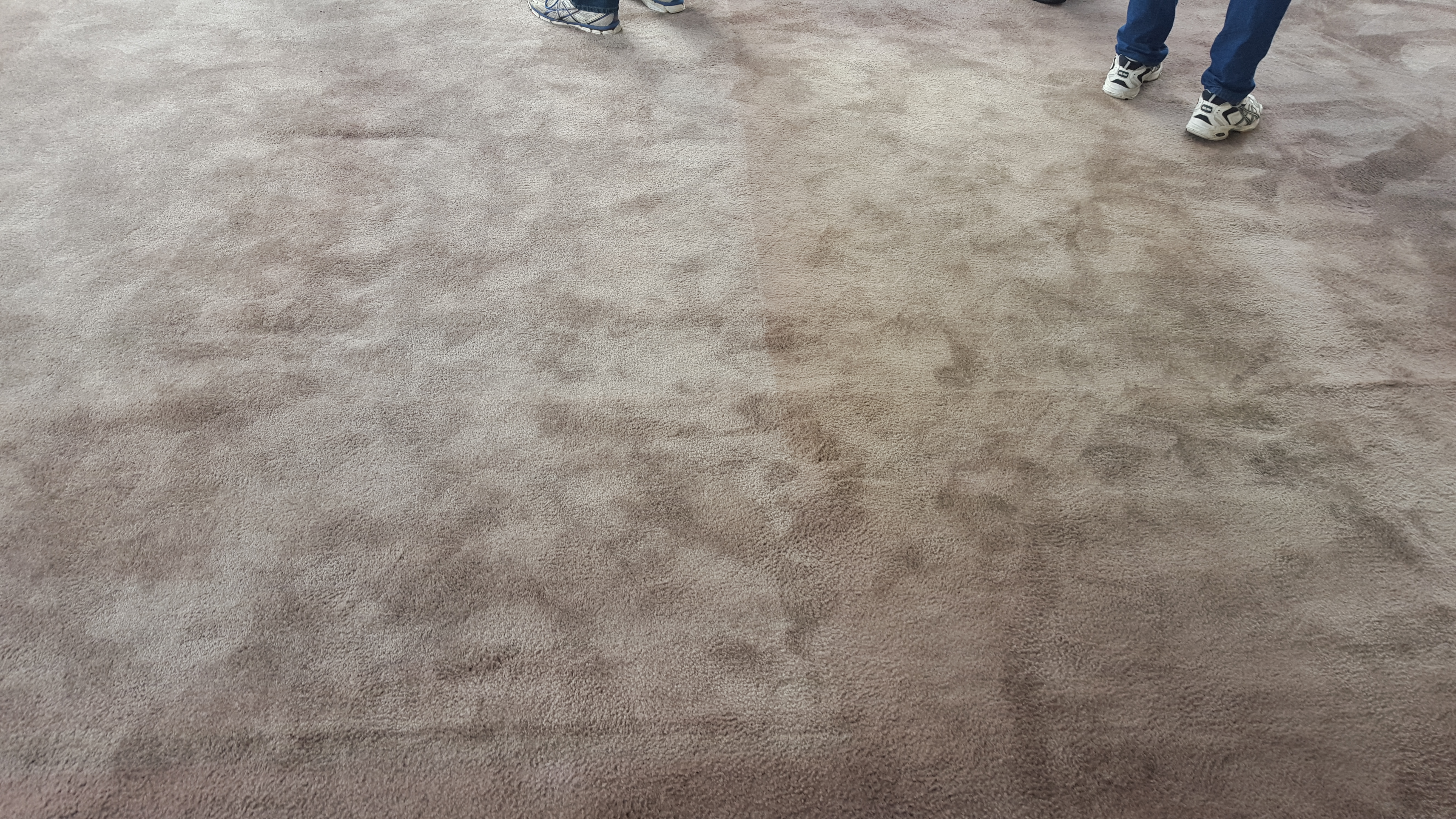 Horribly uneven. Carpet dye doesn't disperse perfectly but that job looks off. It looks like the dye was put down with a 175. When I was subbing for Langenwalter we did a hotel top to bottom every January and February. I wonder how they did the carper base on the wall.looks splotchy af in my eyes, but it could still be wet...?
