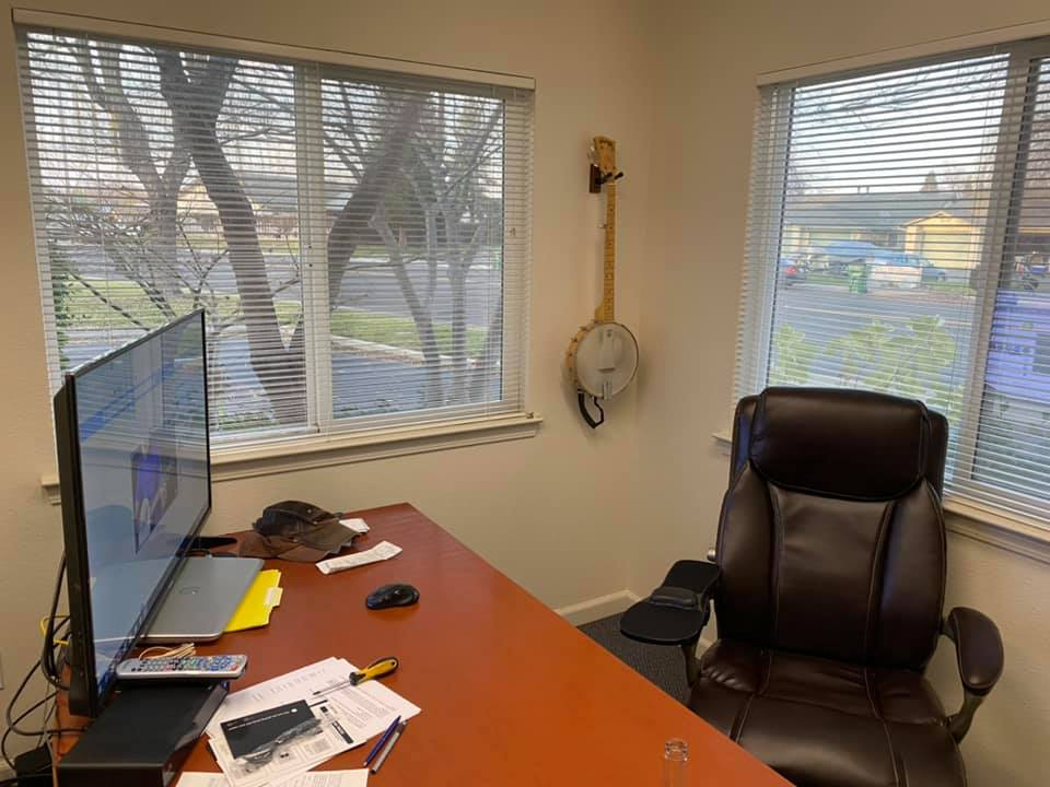 Look at all those desks.... Some people live a sad life. At least I keep a banjo at my desk.
