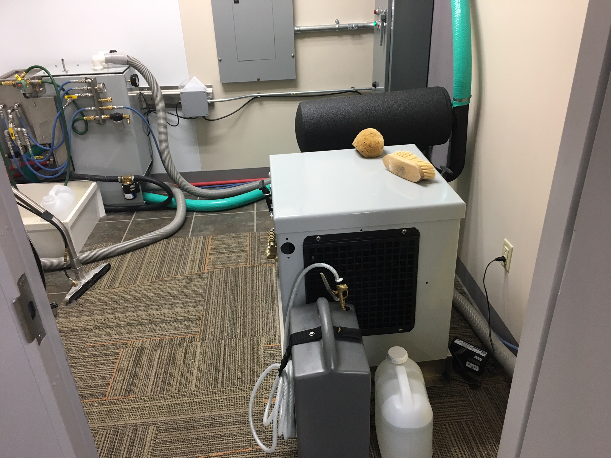 When I was with another company many years ago, we used a Hydramaster slide-in mounted onto a heavy duty dolly for our in plant machine. Just had to push it outside to use it.