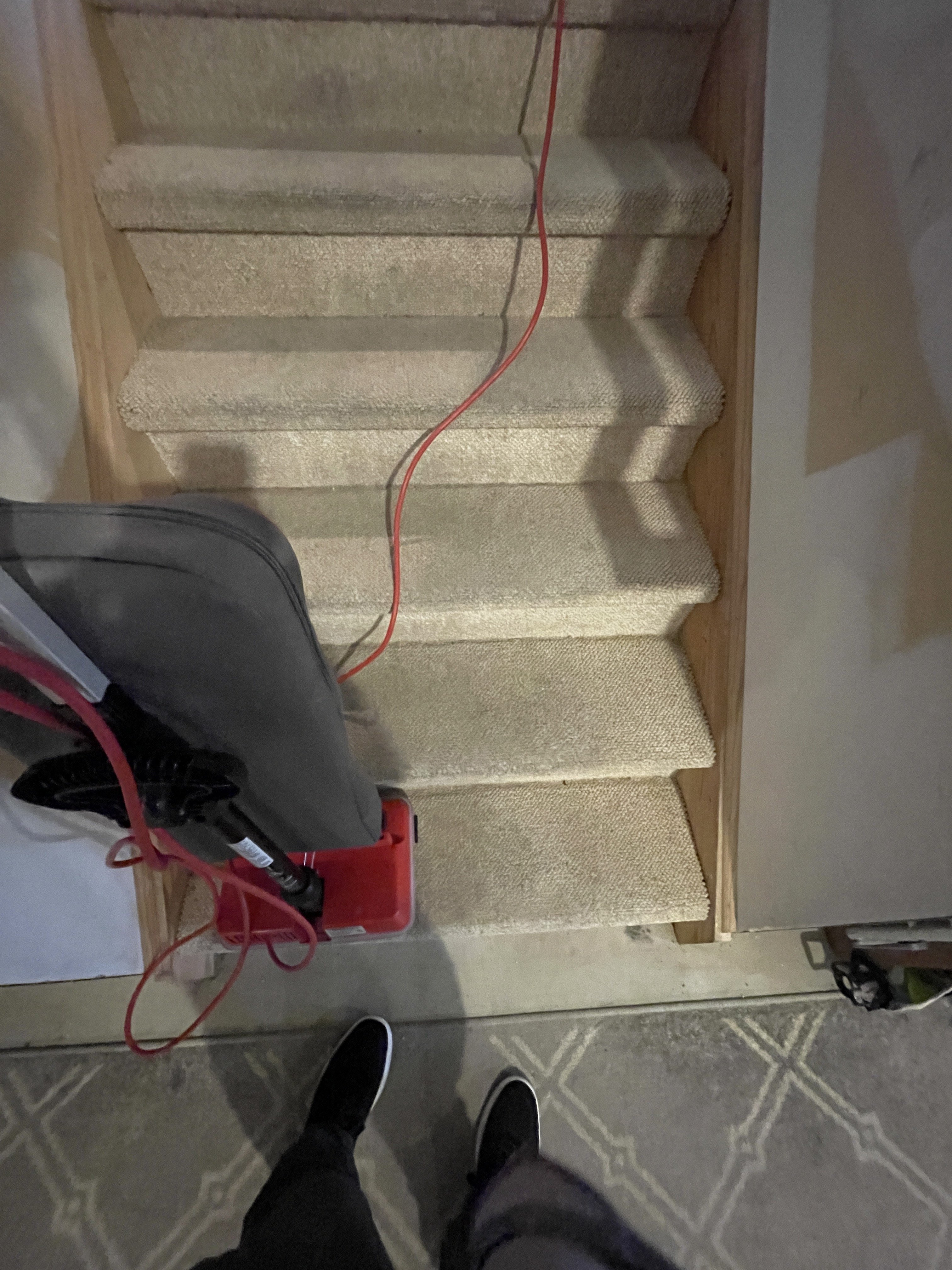 She totally understood and just went with the stairs (this time the ones to the garage for the first time), the little landing area connecting the stairs mid level, and the Master bedroom traffic areas. $220.